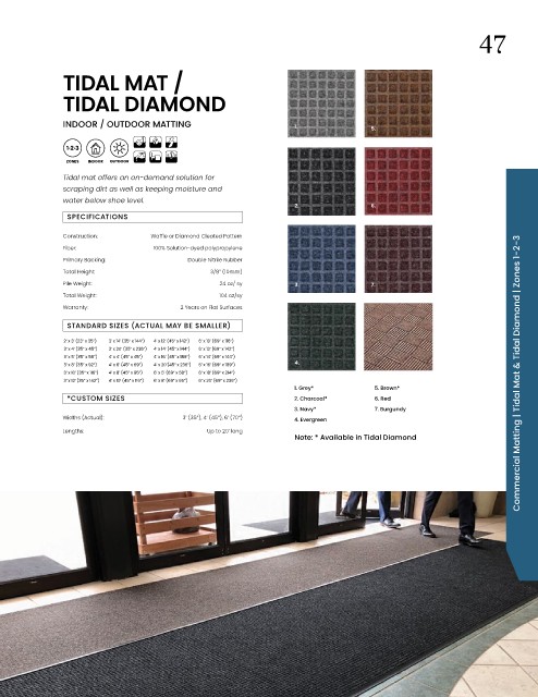 3’ x 10’ (35” x 116”) 4’ x 8’ (45” x 95”) 6’ x 5’ (69” x 58”) 6’ x 18’ (69” x 214”) Commercial Matting | Tidal Mat & Tidal Diamond | Zones 1-2-3