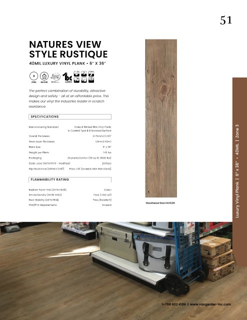 Slip Resistance (ASTM D 2047) Pass: 0.61 (Exceeds ADA Standards) Luxury Vinyl Plank | 6” x 36” • 40MIL | Zone 3