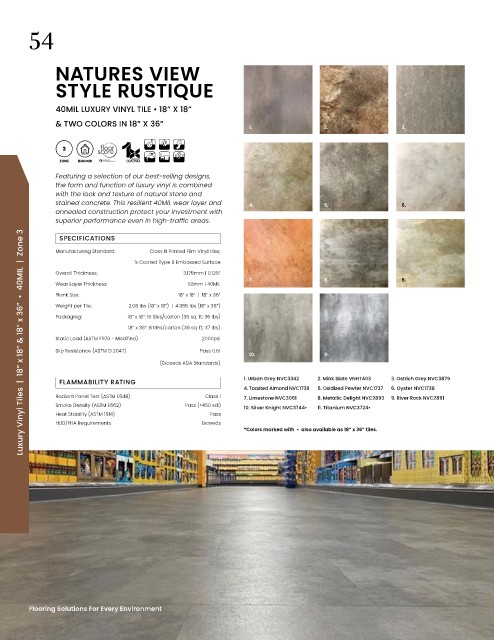 Radiant Panel Test (ASTM E648) Class 1 7. Limestone NVC3061 8. Metallic Delight NVC2893 9. River Rock NVC2891